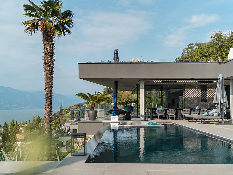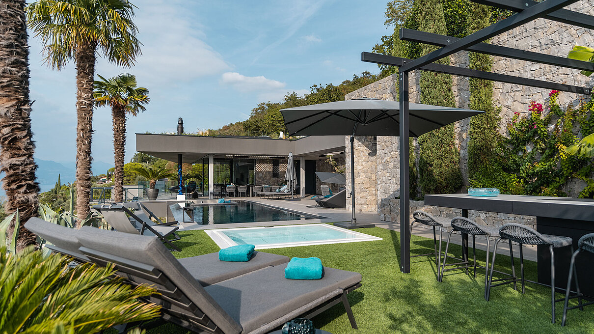 Ogni dettaglio combina raffinatezza ed eleganza, mentre le finestre a tutta altezza offrono una vista spettacolare sul lago scintillante. Qui troviamo pace e privacy in una posizione esclusiva, circondata da un paesaggio pittoresco. Questa villa non è solo un alloggio, ma una vera e propria esperienza.